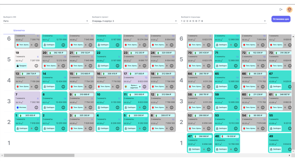 The steps taken:- Following an analysis of the entire market of new housing developments in Kazan and the first price set by the developer, a decision was made to hike up the prices of the liquid lots by five percent while cutting down the prices of the illiquid lots by five percent as well;